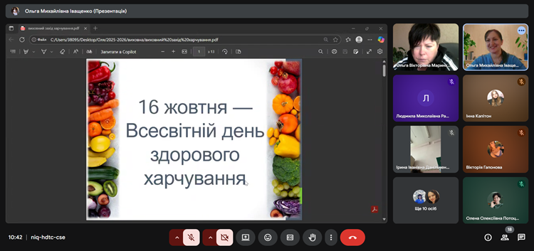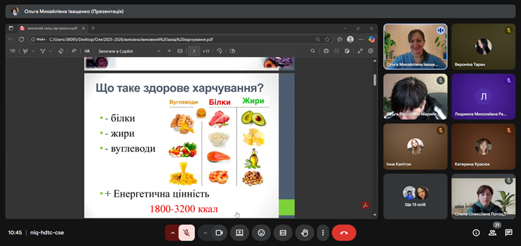 Напередодні Дня здорового харчування, 13 жовтня 2025 року, викладач Іващенко Ольга Михайлівна провела в центрі виховний захід, під час якого здобувачі освіти та педагоги дізналися багато цікавого про основи здорового харчування, корисні продукти, формування здорових звичок і способи збереження власного здоров’я.