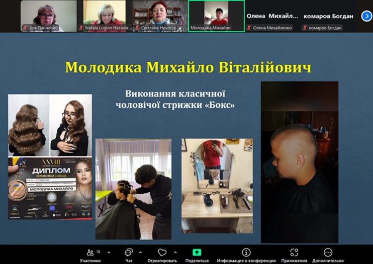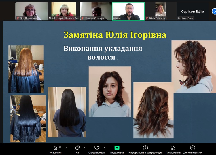 Здобувачі освіти виконали пробні кваліфікаційні роботи, презентували досягнення групи за час навчання та проходження виробничої практики на підприємствах, розповідали технологію виконання зачісок членам кваліфікаційної комісії. Крім цього здобувачі освіти виконали тести на з предметів професійно-теоретичної підготовки.