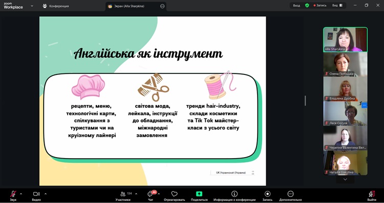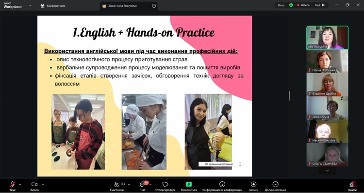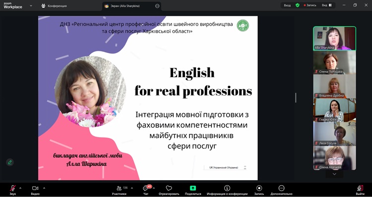 У заході взяла участь Алла ШАРИКІНА, викладачка ДНЗ «Регіональний центр професійної освіти швейного виробництва та сфери послуг Харківської області», яка представила доповідь «English for Real Professions: інтеграція мовної підготовки з фаховими компетентностями майбутніх робітників сфери послуг». У своїй презентації вона висвітлила досвід інтеграції англійської мови в освітній процес підготовки спеціалістів з професій сфери послуг, а також продемонструвала практичні приклади формування у студентів іншомовних та професійних компетентностей.