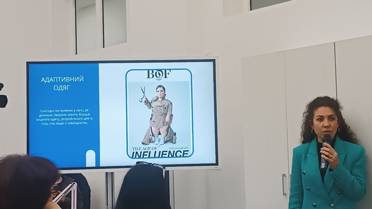 Спікер Лілія Дерман представила інформацію про адаптивну моду, категорії користувачів адаптивним одягом, розповіла про функціональність, матеріали та технології у проєктуванні адаптивного одягу.