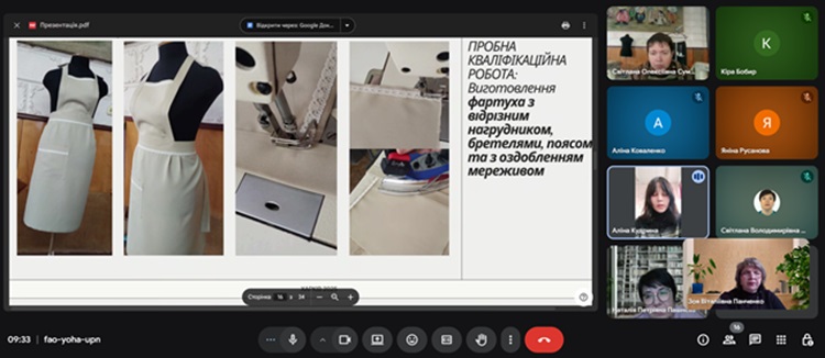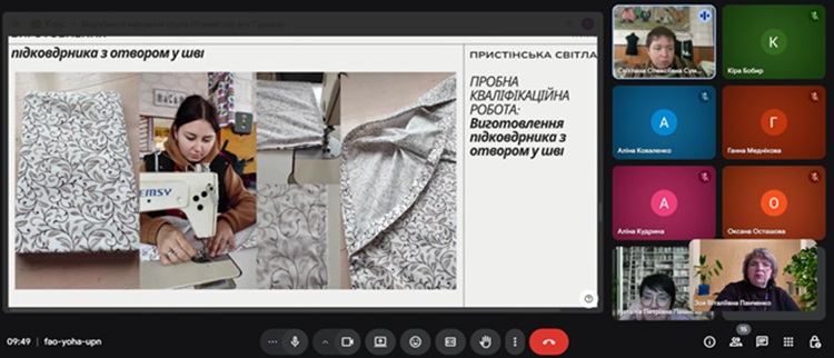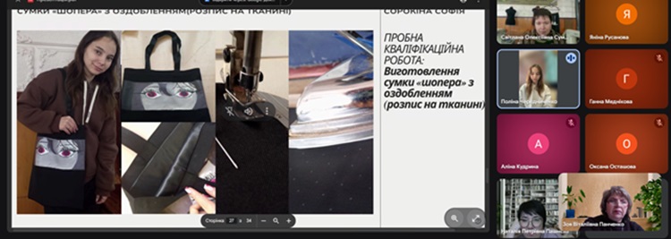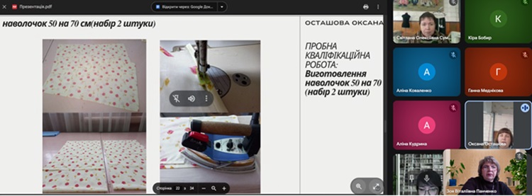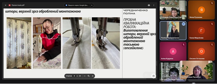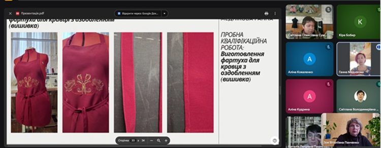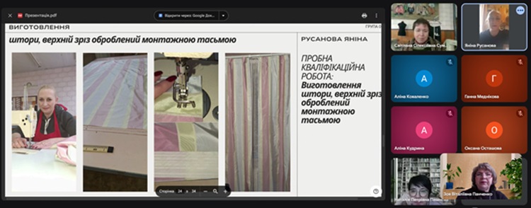 Студенти представили свої пробні кваліфікаційні роботи (швейні вироби) розповіли технологію їх виготовлення, пройшли тестування. Керівник групи, майстер виробничого навчання Світлана СУМЦОВА-ЛОСКУТОВА представила висновки проходження виробничої практики, роботи кожного студента у презентації.