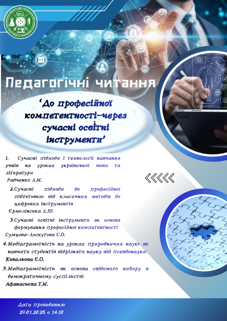 29.01.2026 в Центрі були проведені педагогічні читання «До професійної компетентності — через сучасні освітні інструменти», метою яких було переконатися, що сучасні освітні інструменти — це не заміна вчителю чи фахівцю, а його суперсила.
