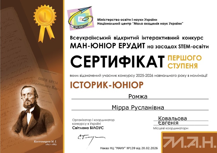Щиро вітаємо переможців та дякуємо координаторам за їхню віддану працю! Бажаємо учасникам нових наукових звершень, цікавих досліджень та подальших перемог у конкурсах і проєктах.