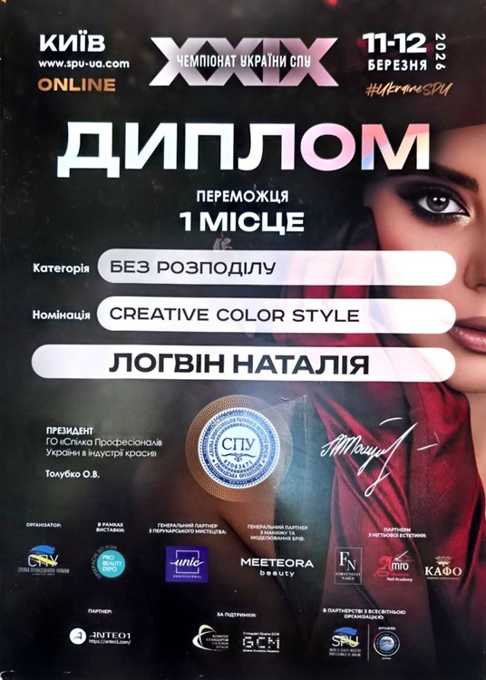 - 🥇 1 місце — Логвін Наталія Сергіївна, майстер виробничого навчання Номінація: «Креативне фарбування»