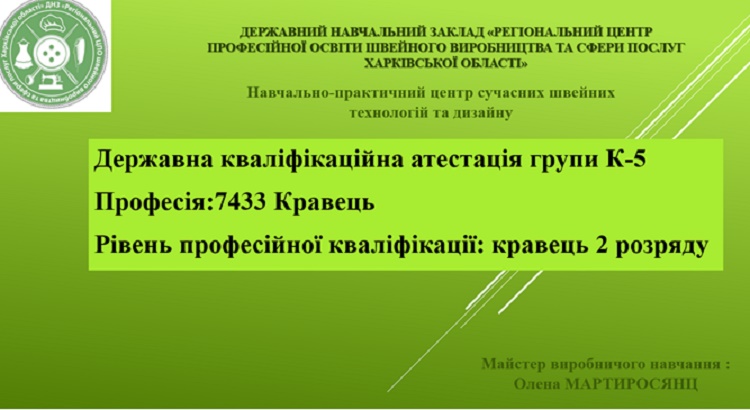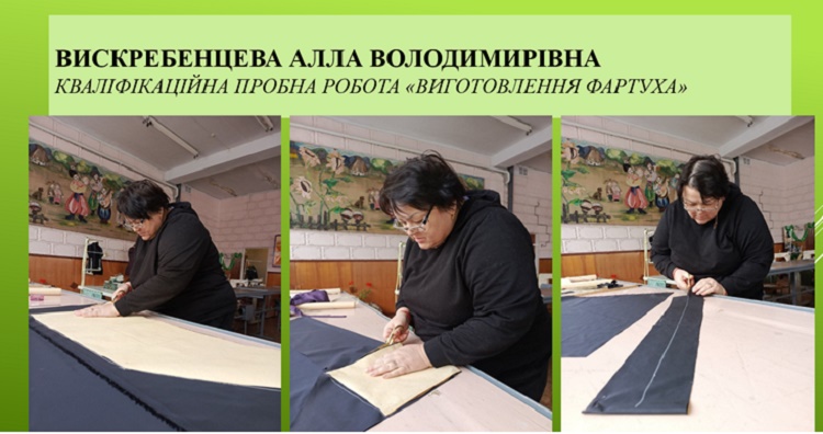 Слухачі представили свої пробні кваліфікаційні роботи (швейні вироби), розповіли технологію їх виготовлення, пройшли тестування. Олена МАРТИРОСЯНЦ, майстер виробничого навчання, представила висновки проходження слухачами виробничої практики, роботи кожного слухача у презентації, слухачі коментували свої роботи, відповідали на запитання.