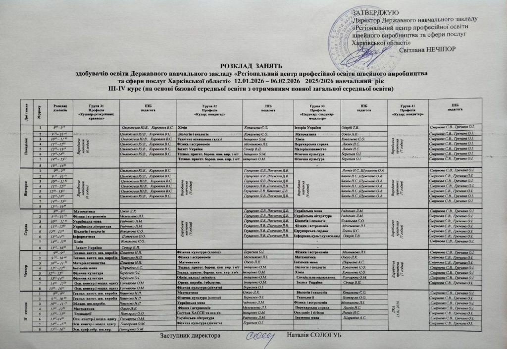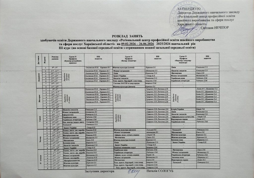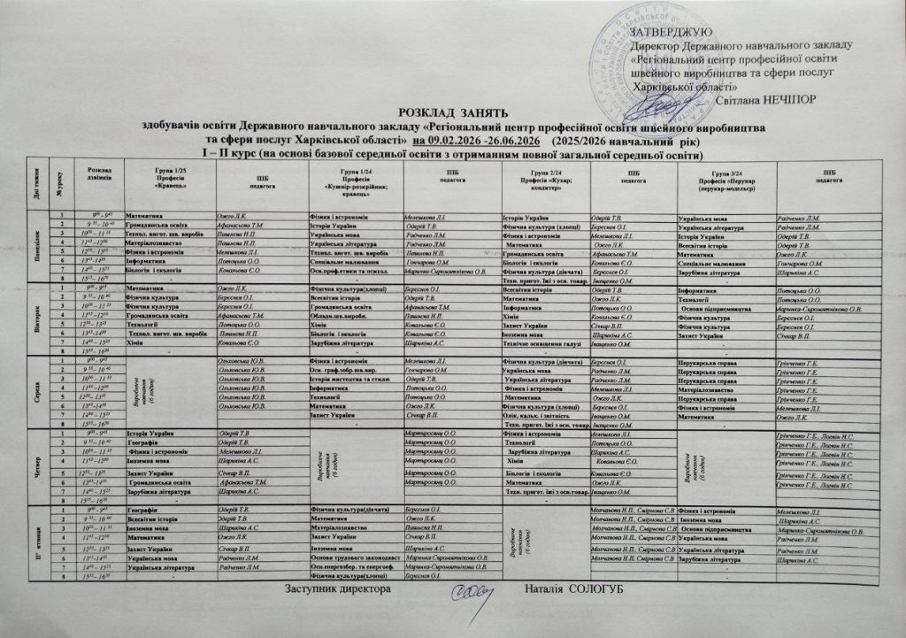 Розклад занять